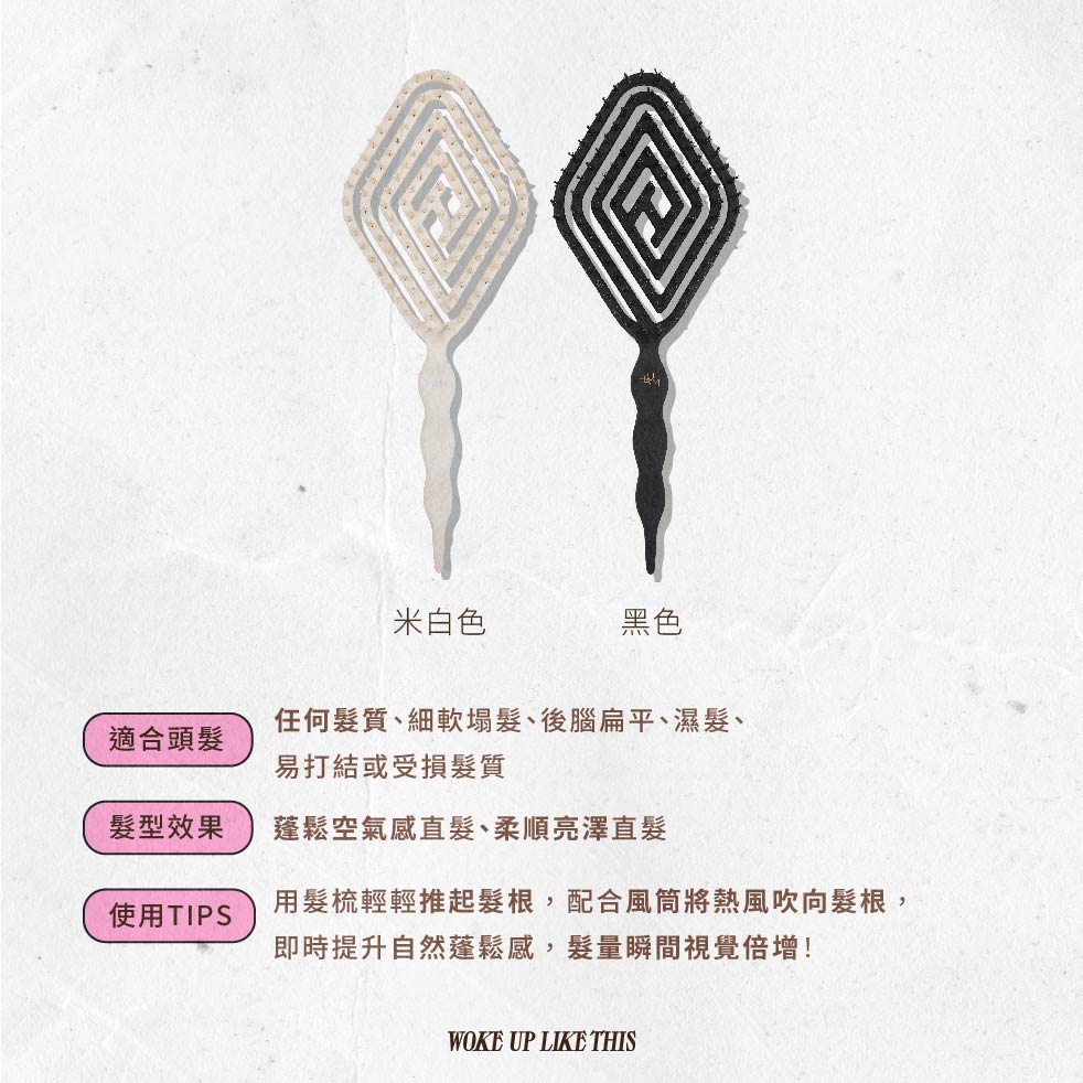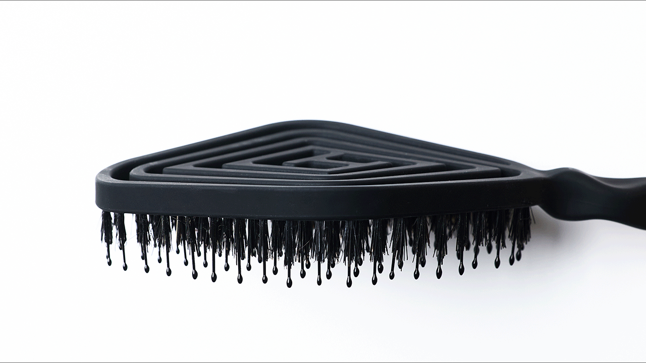 This paddle brush features a diamond-shaped cushion and hollow air hole design that gently hugs your scalp and detangles without pulling. Boar bristles smooth frizz and add a healthy, natural shine. The airy structure lets you blow dry faster while boosting volume and giving your hair a fuller shape.